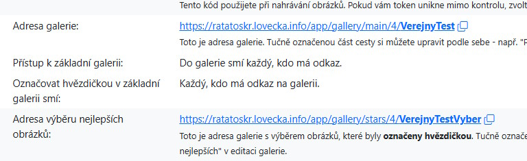 V nastavení galerie jsou vypsané cesty ke galerii: Tyhle dvě URL budeme následně používat.Nejnovější fotka